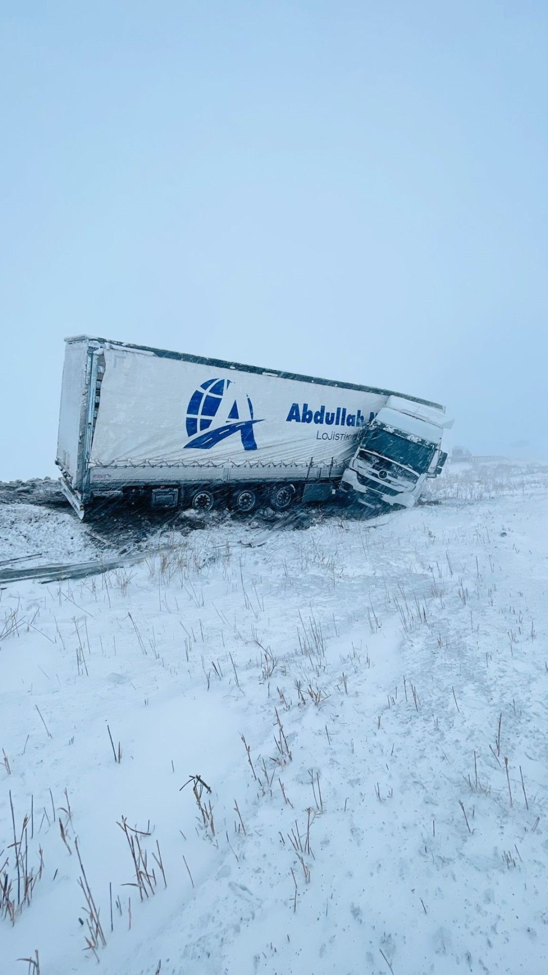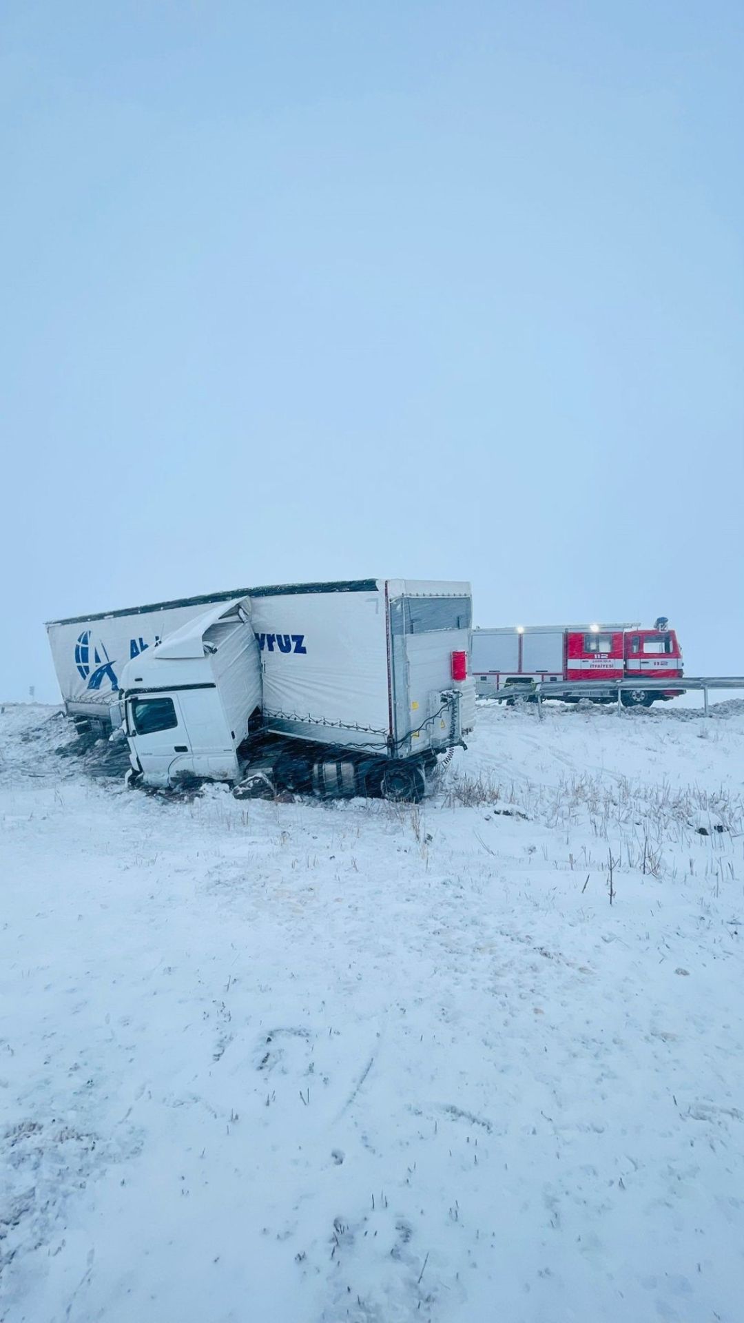 Sivas’tan yola çıkarak Sivas-Şarkışla yolu üzerinde seyreden tır sürücüsü M.G., Elmalı Köyü yakınlarında kar ve fırtına nedeniyle görüş mesafesinin düşmesne bağlı olarak direksiyon hakimiyetini kaybetti