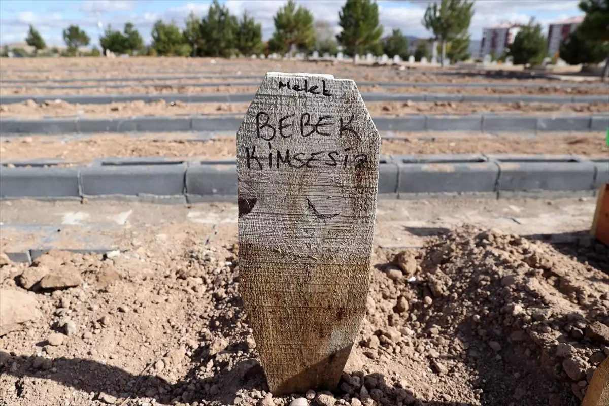 Çocuk mezarlığı bölümüne defnedilen bebeğin kabrinin başına konulan tahtaya “Melek bebek kimsesiz” yazıldı.