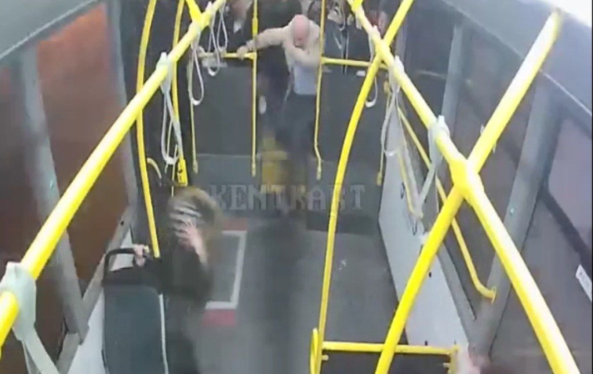 Çarpışmanın etkisiyle otobüsteki yolcuların savrulduğu anlar ve yaşanan panik güvenlik kamerasına yansıdı.