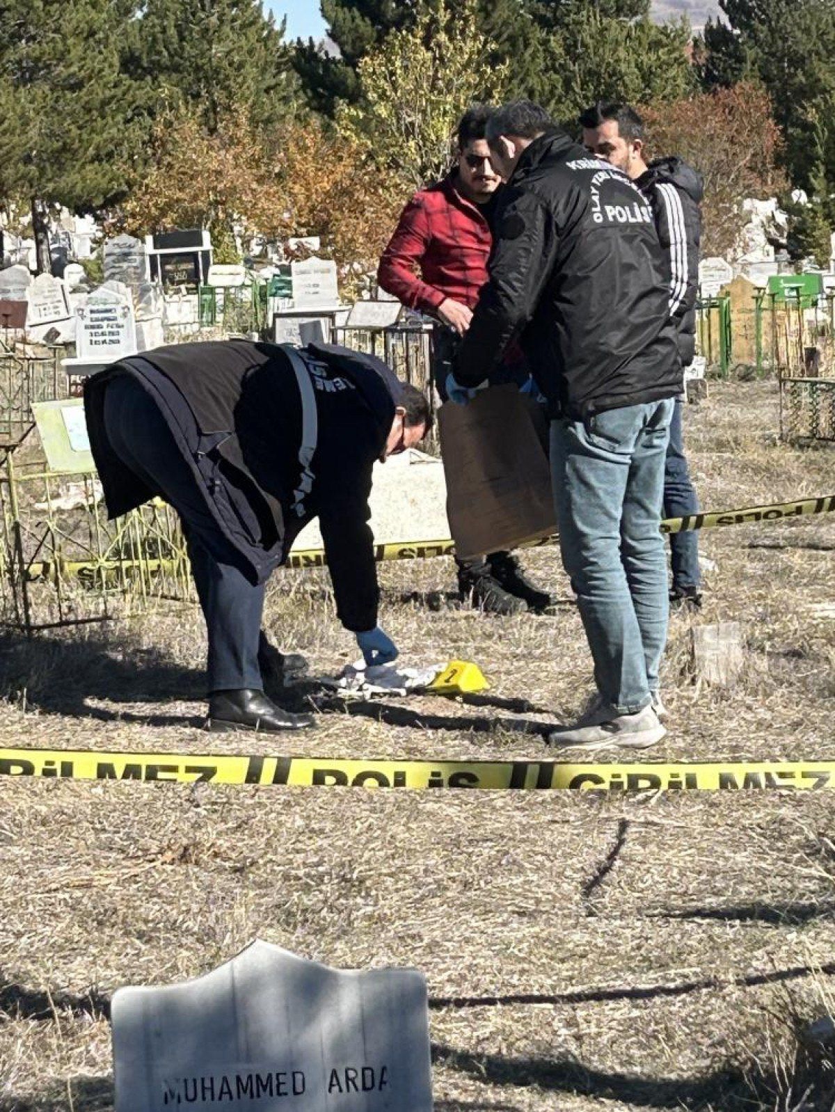 Sivas Emniyet Müdürlüğü ekipleri ölü doğan bebeğin ilk gömüldüğü mezarda bugün inceleme yaptı.