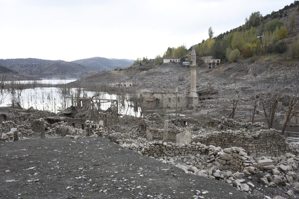 Birçoğu harabe halinde olan köyde cami ve bazı binaların halen aynı şekilde sağlam kaldığı görüldü. Çekilen bölgelerdeki kuruma nedeni ile eski köy kalıntısı, içinde rahatlıkla gezilebilir hale geldi.