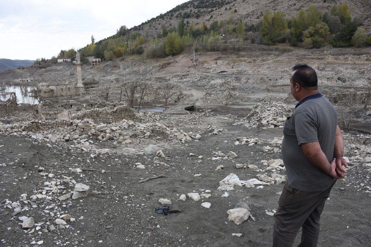 2008 yılında su tutmaya başlayan Pusat Özen Barajı’nın altında kalan Pusat köyünün taşındığı dönemde çalışan Ramazan Karagöz, yıllar sonra yeniden bölgeyi ziyaret ederek kalıntılar arasında gezinti yaptı.