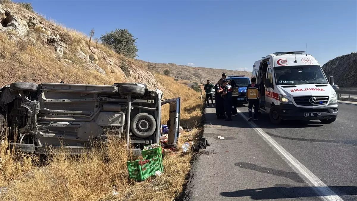 Sivas'ta hafif ticari aracın devrilmesi sonucu 4 kişi yaralandı, yaralılar hastaneye kaldırıldı.