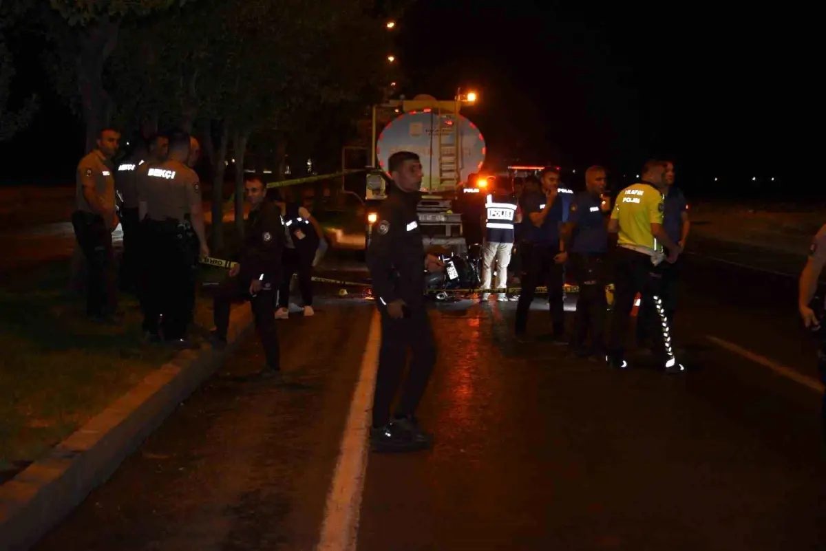 Şanlıurfa’nın Siverek ilçesinde sulama yapan tankerle çarpışan motosikletteki iki kişi hayatını kaybetti.