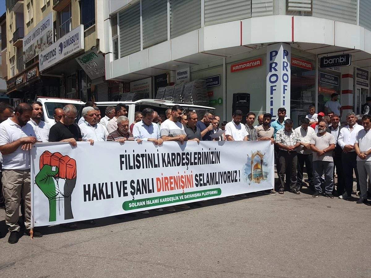 Solhan İslami Kardeşlik ve Dayanışma Platformu Temsilciliği öncülünde Ulu Cami önünde bir araya gelen vatandaşlar İsrail aleyhine slogan attı.