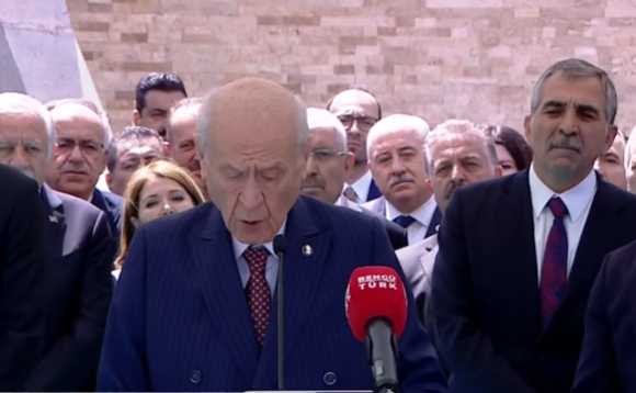 MHP Lideri Bahçeli Ankara Kızılcahamam’da Ülkücü Şehitler Anıtı’nda. DEM Parti ile görüşme yapmasının ardından Anıta gelen Bahçeli burada yaptığı konuşmada şu ifadeleri kullandı: