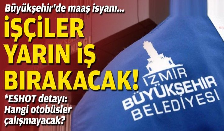 Belediye-İş’in, yarın gün içerisinde yapılacak eyleme ilişkin bir açıklama yapması bekleniyor. Eylemin, İzmir’deki belediyeye bağlı yarın, il genelinde ESHOT’a bağlı şehir içi otobüsler hizmet vermeyecek, İZENERJİ tüm gün iş bırakmış olacak. Metro ve tramvay ise aksamalı olarak ulaşımı sağlayacak.