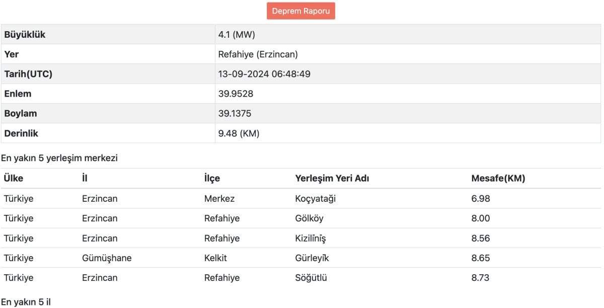 SON DAKİKA! Erzincan’da 4.1 büyüklüğünde deprem
