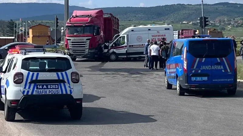 Bolu’nun Gerede ile Yeniçağa ilçeleri arasındaki D-100 Karayolu ayrımında otomobil ile ambulans şiddetli bir şekilde çarpıştı.