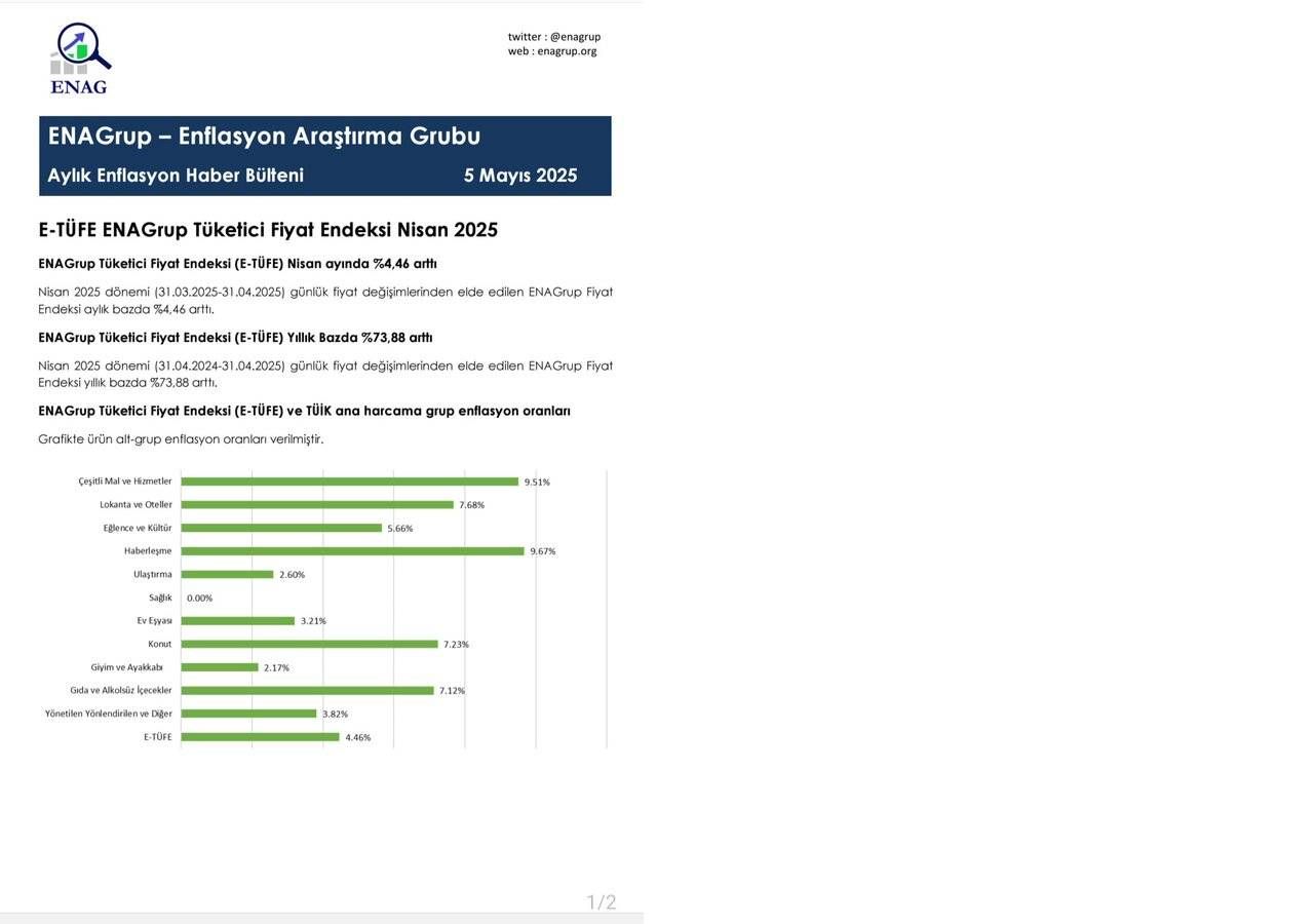 Geçtiğimiz ay ENAG, mart ayı enflasyonunu yüzde 3,91 olarak, yıllık enflasyonu da yüzde 75,20 olarak açıklamıştı.