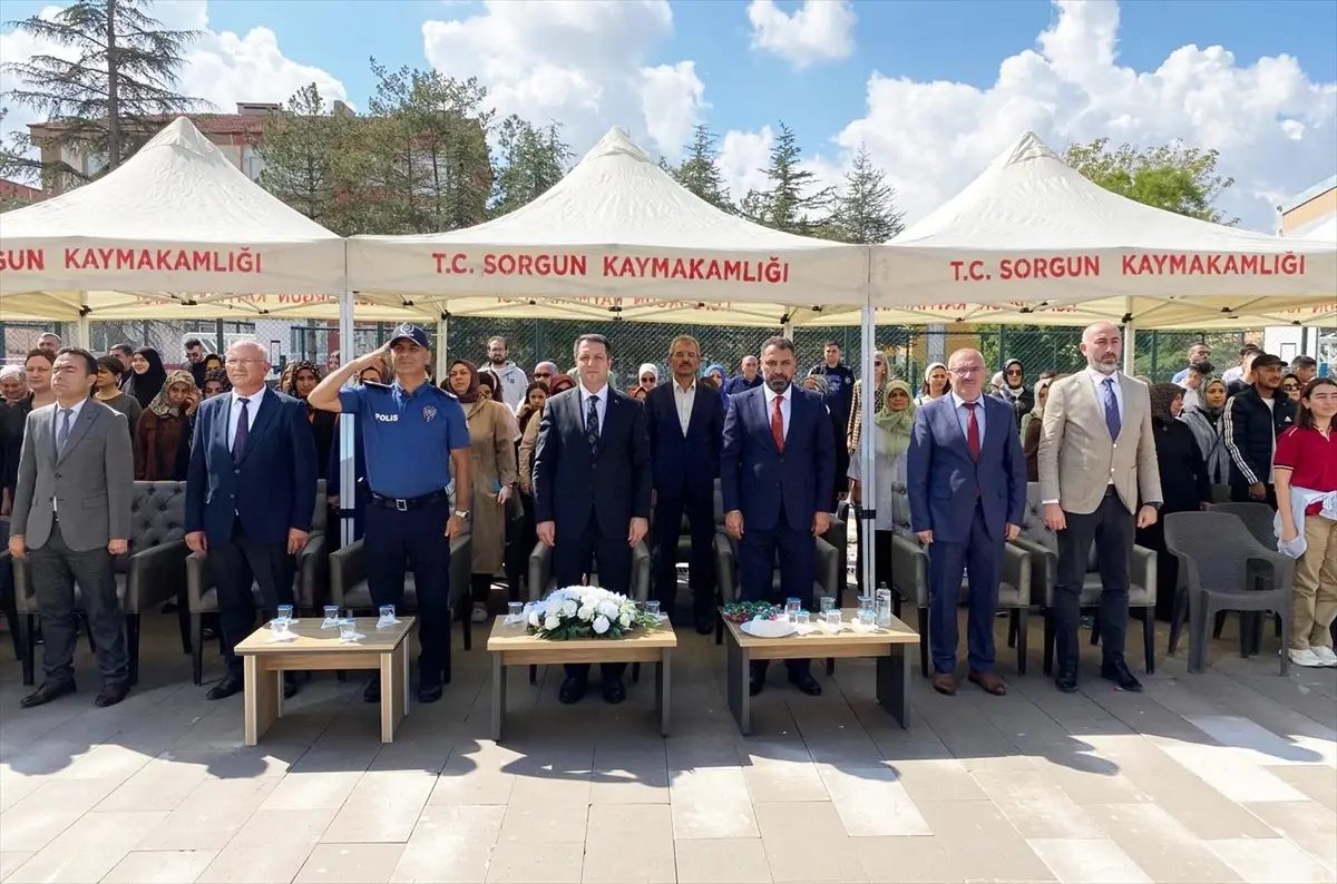 Sorgun İlçe Milli Eğitim Müdürlüğünce Yeşilyurt İlkokulu’nda gerçekleştirilen törende saygı duruşunda bulunuldu, İstiklal Marşı okundu.