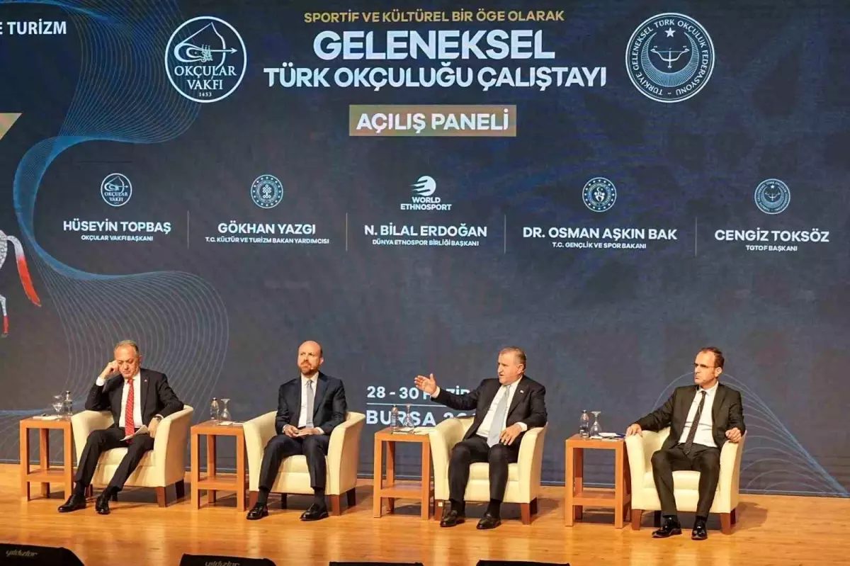 Geleneksel Türk Okçuluğu’nun gelecek vizyonunun ele alındığı ‘Geleneksel Türk Okçuluğu Çalıştayı’, Merinos Atatürk Kongre ve Kültür Merkezi’nde düzenlendi. Okçular Vakfı Başkanı Hüseyin Topbaş’ın moderatörlüğünde gerçekleştirilen etkinliğe, Dünya Etnospor Birliği Başkanı Bilal Erdoğan, Gençlik ve Spor Bakanı Osman Aşkın Bak ile Türkiye Geleneksel Türk Okçuluk Federasyonu Başkanı Cengiz Toksöz katıldı.