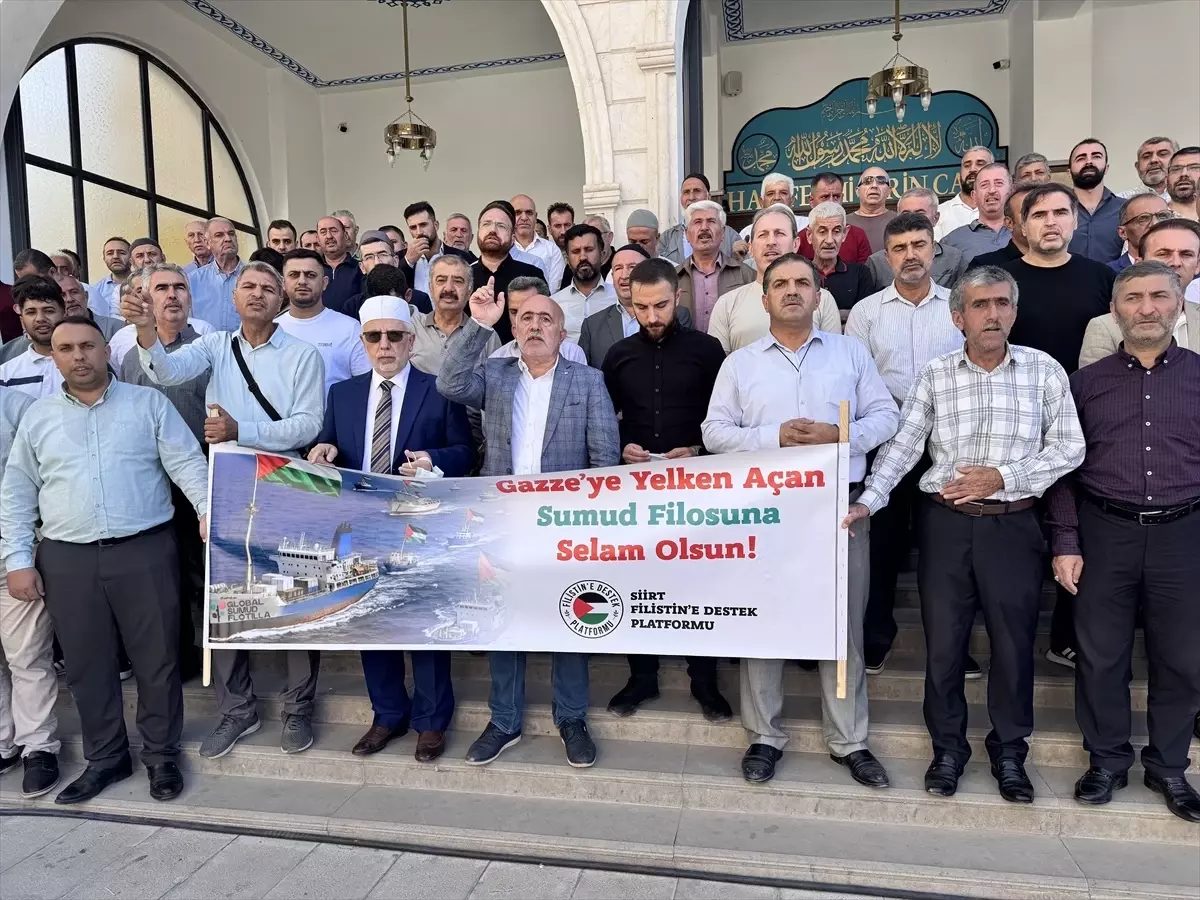 Siirt’te Filistin’e Destek Platformu öncülüğünde Hacı Fethi Serin Camisi’nde bir araya gelen katılımcılar İsrail’in Küresel Sumud Filosu’na düzenlediği saldırıları protesto etti.