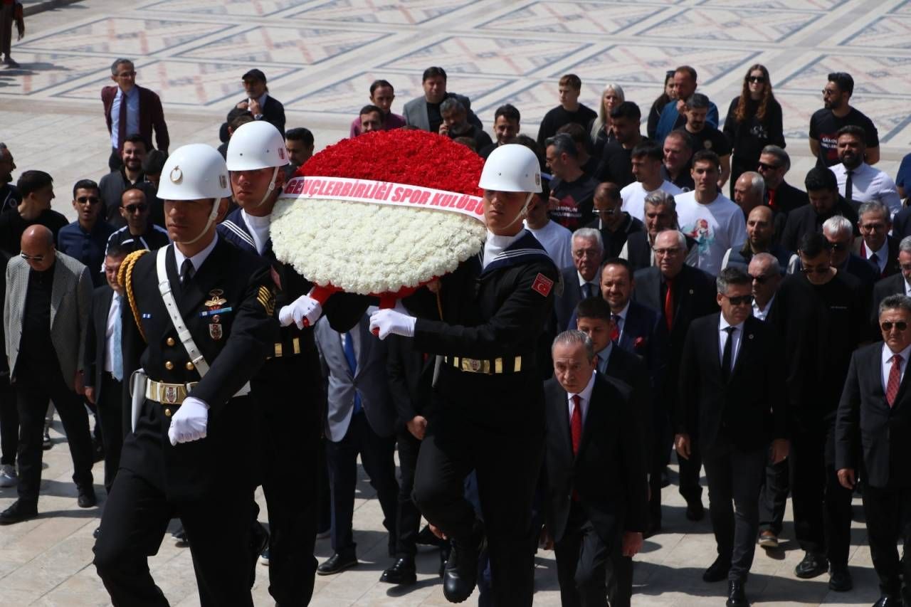 TFF 1’inci Lig’i 68 puanla 2’nci sırada tamamlayarak 4 yıl aranın ardından yeniden Süper Lig’e yükselen Gençlerbirliği takım halinde Ata’nın huzuruna çıktı. Anıtkabir meydanından yürüyerek üzerinde ‘Gençlerbirliği Spor Kulübü’ yazılı kırmızı-beyaz karanfillerden oluşan çelengi mozoleye koyan Başkan Osman Sungur, yönetim kurulu üyeleri, futbolcular ve teknik ekip saygı duruşunda bulundu. Anıtkabir merdivenlerinde kazanılan kupa ile toplu olarak hatıra fotoğrafı çektiren Başkent ekibi daha sonra Misak-ı Milli Kulesi’ne geçti.