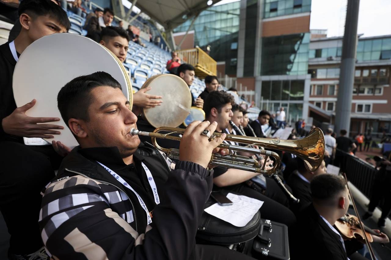 Recep Tayyip Erdoğan Stadı’nda yapılan müsabaka öncesinde Beyoğlu Mustafa Kandıralı Güzel Sanatlar Lisesi, “Sevgi ve kardeşlik için spor müzik el ele” diyerek müzik şenliği gerçekleştirdi.