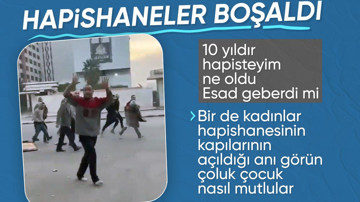 Beşar Esad’ın yenilgi karşısında ülkeden kaçtığı belirtilirken, kendilerini yeni hükümet olarak tanıtan muhalif gruplar, mahkumları serbest bırakmaya başladı.