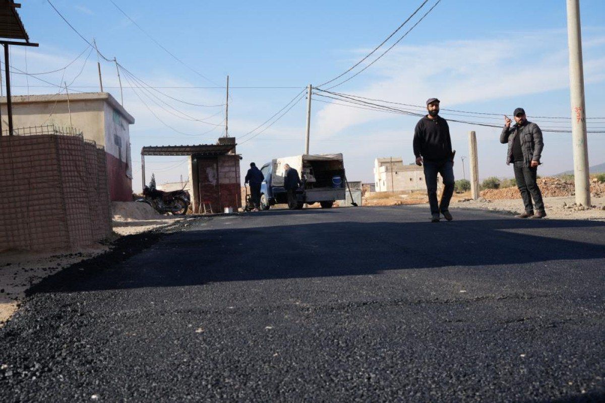 Suriye'de PKK/YPG terör örgütünden arındırılan Münbiç'e giden yollarda asfaltlama ve onarım çalışmaları başladı.