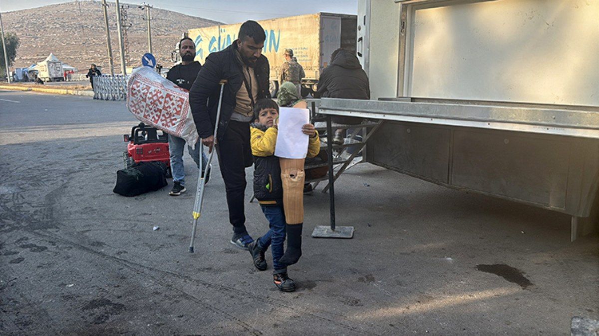 Hatay’da ailesiyle yaşadıkları evin 6 Şubat 2023’teki depremde yıkılması sonucu annesi ve kardeşinin yanı sıra dedesi ve anneannesini kaybeden Ömer Talha, enkazdan 5 gün sonra kurtarıldığı babası Muhammed Talha ile ülkesine dönmek üzere sınır kapısına gitti.