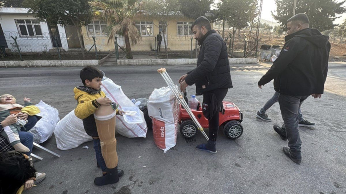 Hatay’da ailesiyle yaşadıkları evin 6 Şubat 2023’teki depremde yıkılması sonucu annesi ve kardeşinin yanı sıra dedesi ve anneannesini kaybeden Ömer Talha, enkazdan 5 gün sonra kurtarıldığı babası Muhammed Talha ile ülkesine dönmek üzere sınır kapısına gitti.