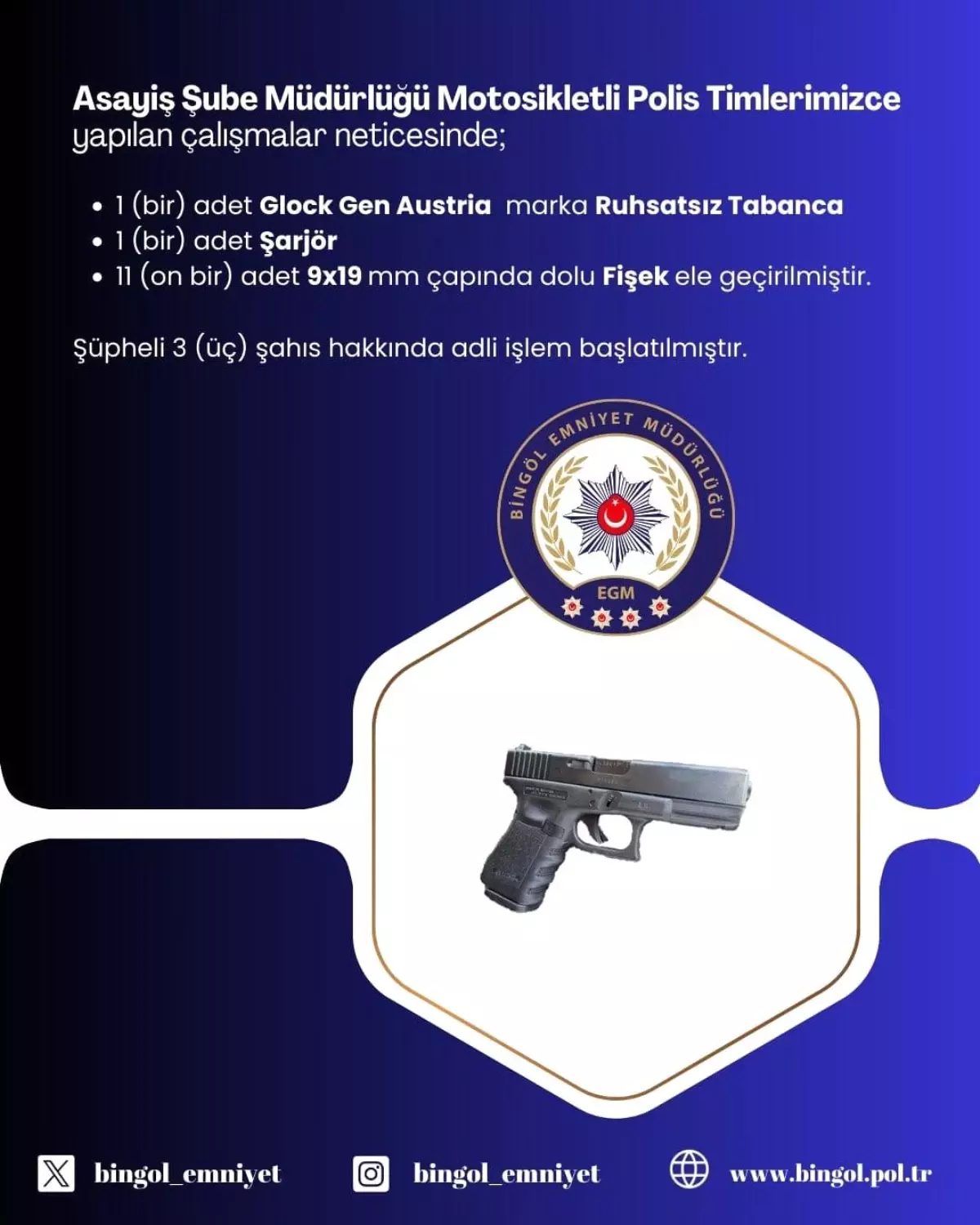 Bingöl'de düzenlenen operasyonda ruhsatsız silah ve fişekler ele geçirildi, 3 kişi gözaltında.