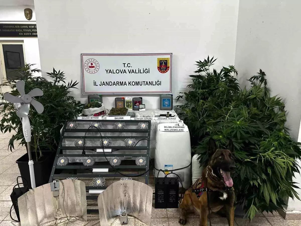 Yalova'da E.A., evinde uyuşturucu yetiştirdiği gerekçesiyle tutuklandı. Operasyonda malzemelere el kondu.