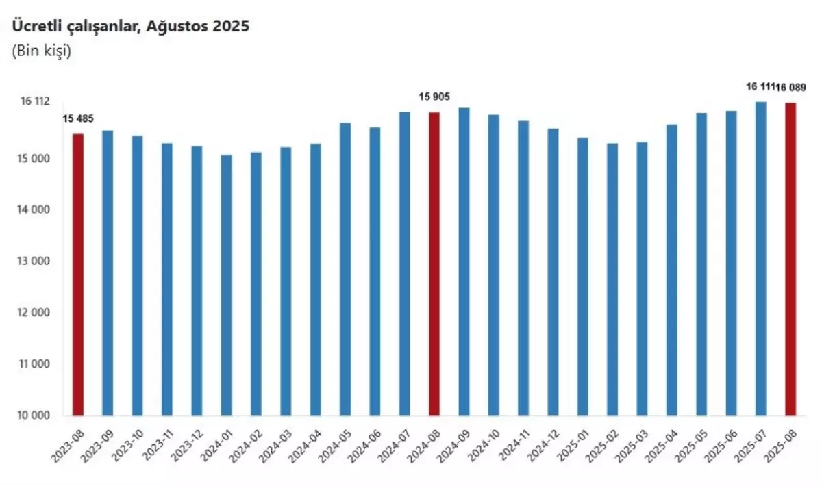 TÜİK, ağustos ayında sanayi, inşaat ve ticaret-hizmet sektörlerinde ücretli çalışan sayısının %1,2 arttığını açıkladı.