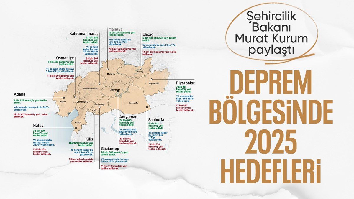 Sosyal medya hesabından paylaşım yapan Murat Kurum, "155 bin konutu sahiplerine teslim ettik, yıl sonuna kadar 200 bin, 2025 yılı sonunda 452 bin 983 konutu teslim edeceğiz" dedi.