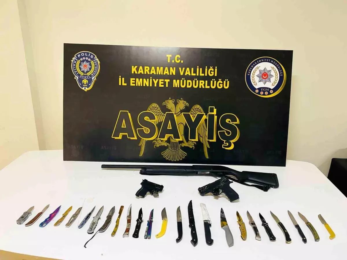 Karaman'da yapılan asayiş uygulamalarında 7 kişi tutuklandı, uyuşturucu ve silah ele geçirildi.