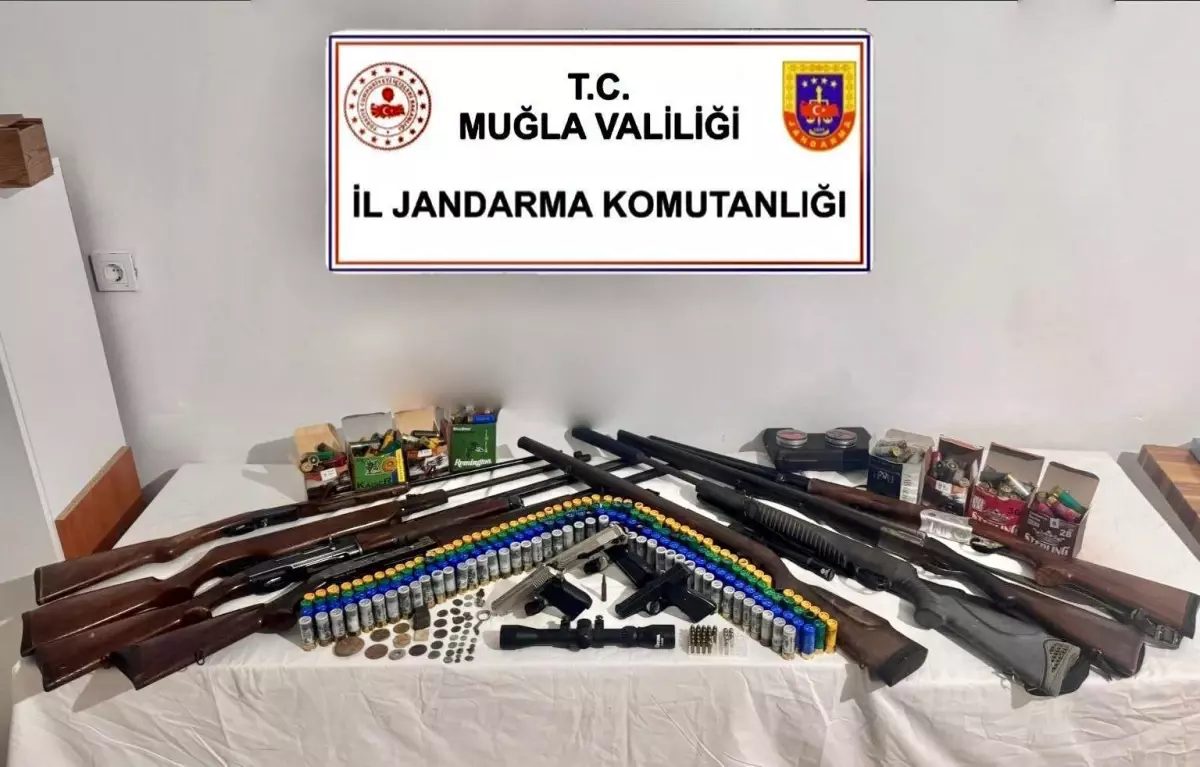 Ula'da bir evde yapılan aramada tarihi eserler ve ruhsatsız silahlar bulundu, adli işlem başlatıldı.