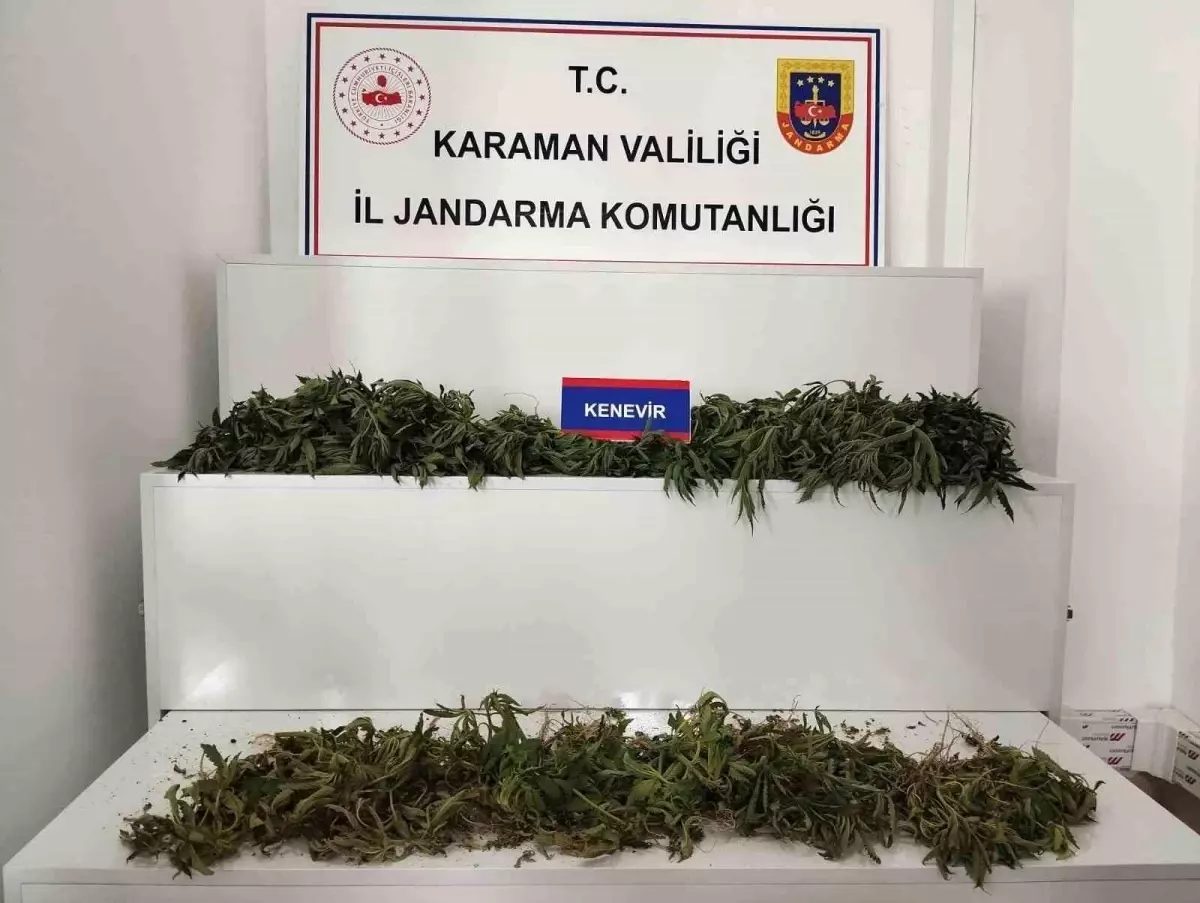 Karaman'da jandarma uygulamalarında 33 kişiden 5'i tutuklandı, 698 kök kenevir ele geçirildi.