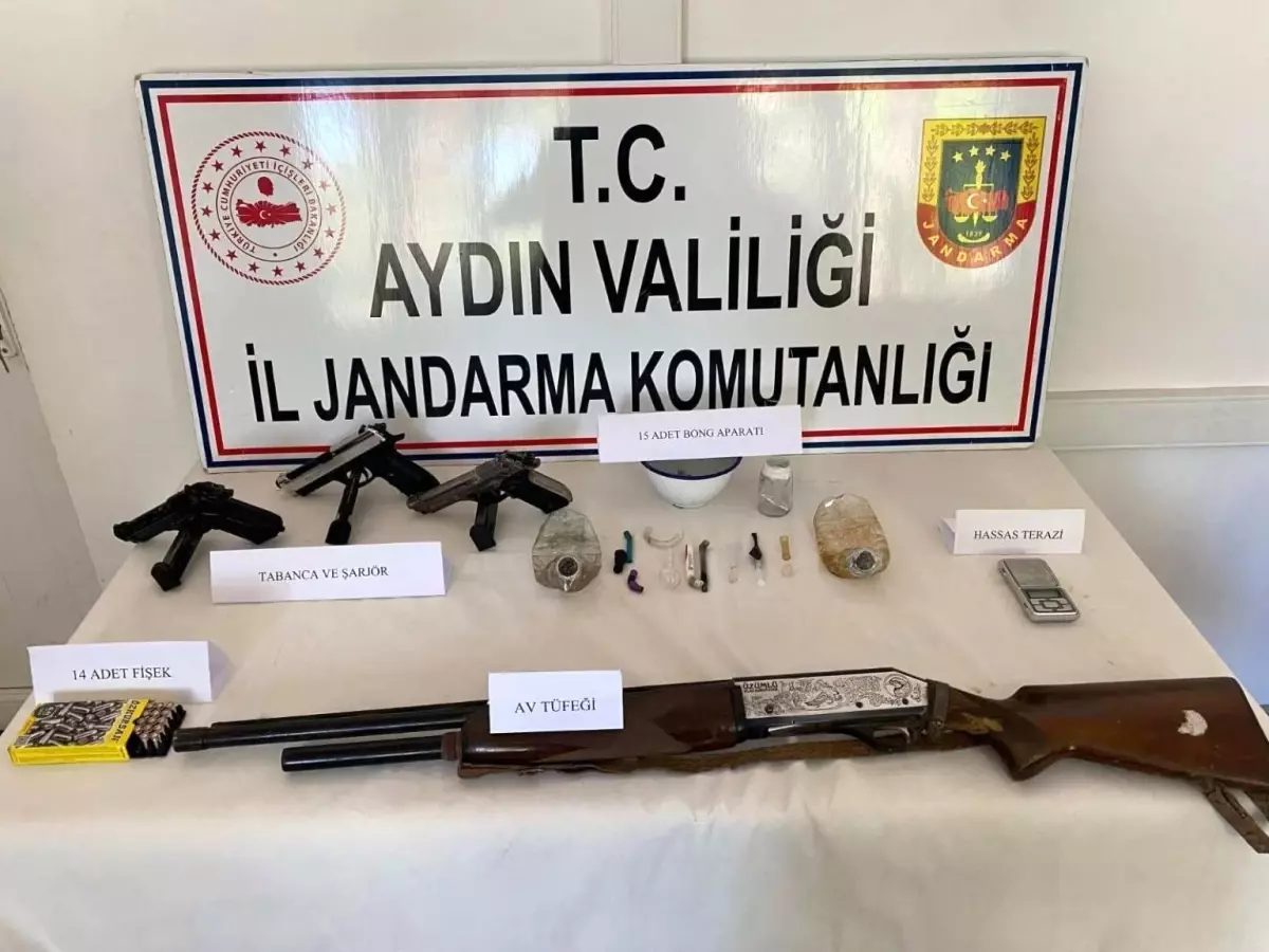 Karacasu'da bir evde uyuşturucu aparatları ve silahlar bulundu, şüpheli hakkında işlem başlatıldı.