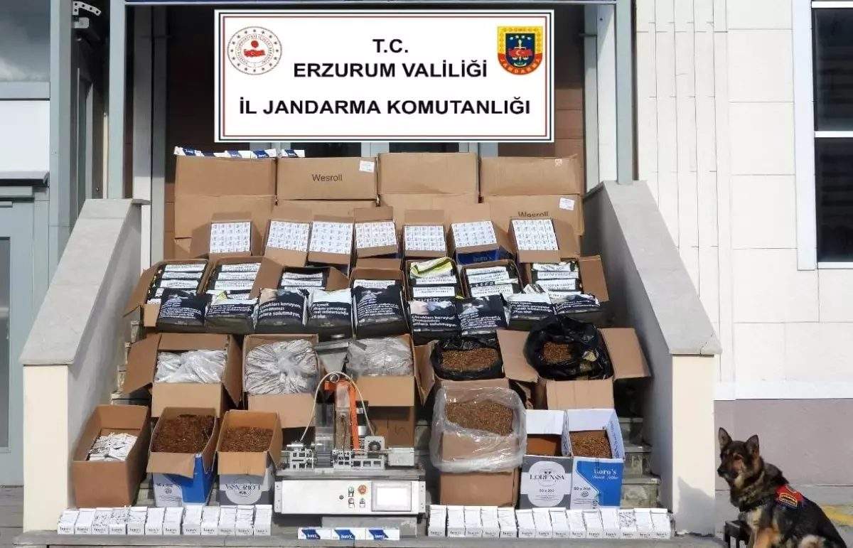 Erzurum'da jandarma ve polis, kaçak sigara imalathanesini bastı, binlerce adet kaçak ürün ele geçirildi.