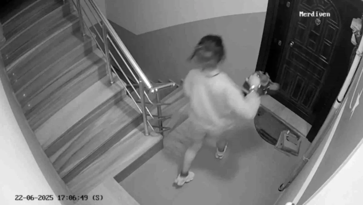 Eskişehir'de iki kadın, apartmanın kapısını zorlayarak içeri girmeye çalıştı. Güvenlik kamerası görüntüleri var.