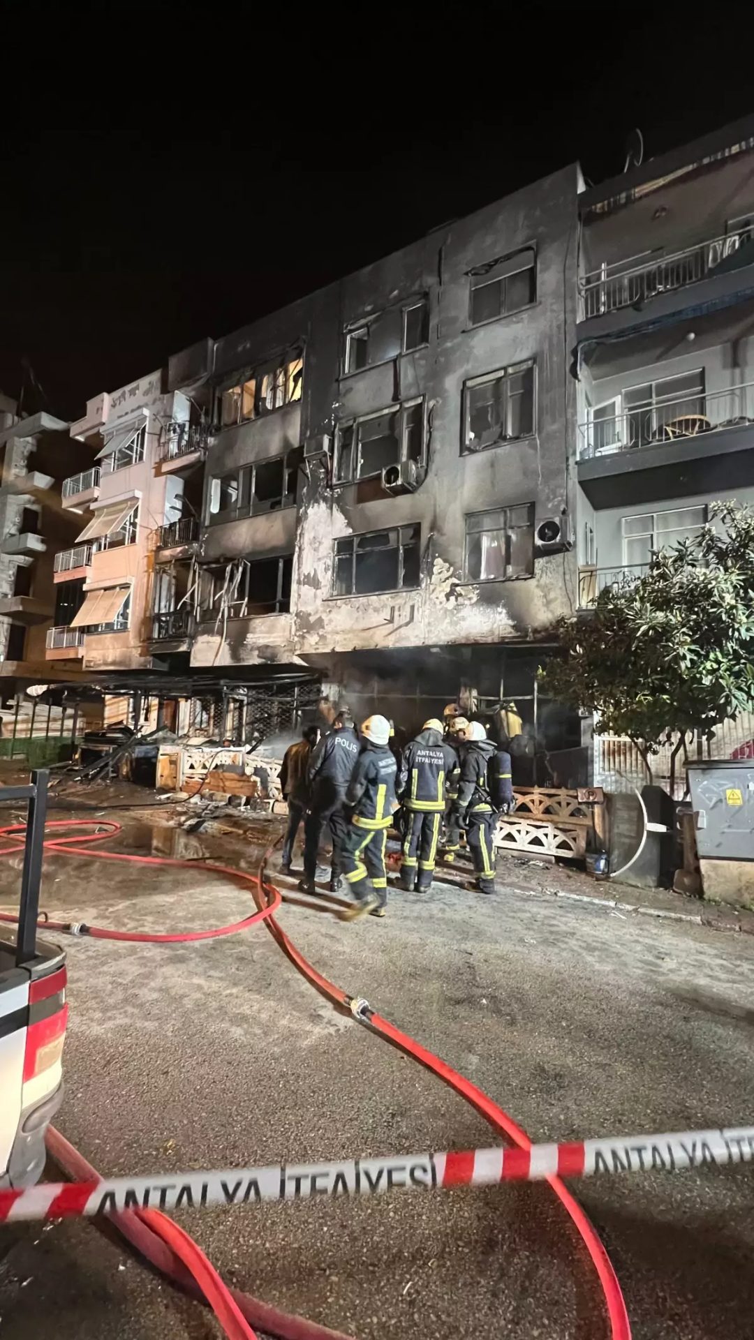 Antalya'da apartman önünde yanan el arabasındaki tekstil ürünleri küle döndü. İnceleme başladı.
