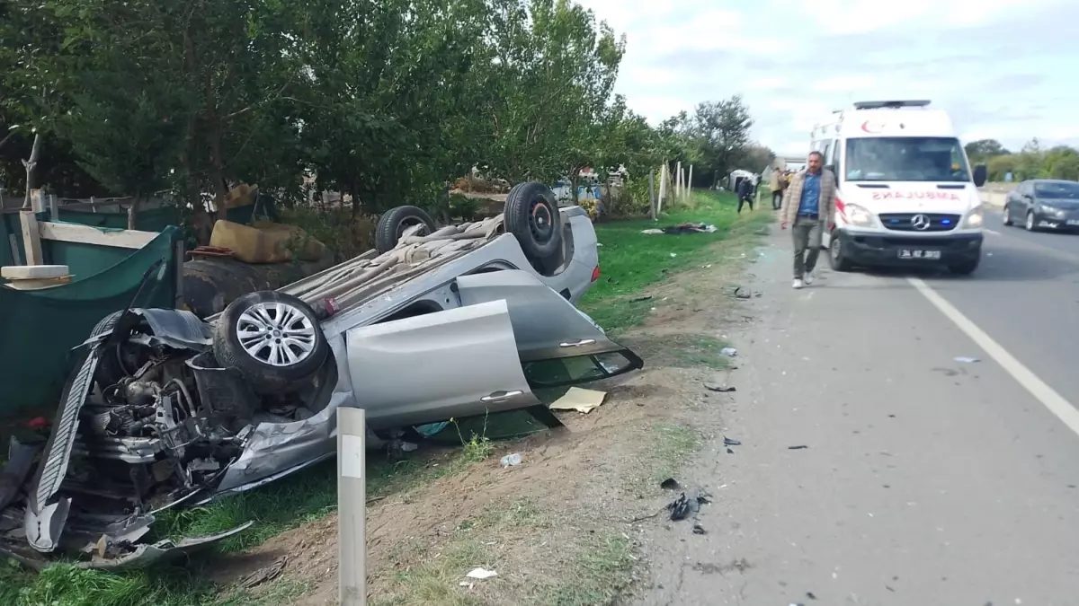 Silivri'de iki otomobilin çarpışması sonucu takla atarak kaza yaptı, sürücüler hafif yaralı.