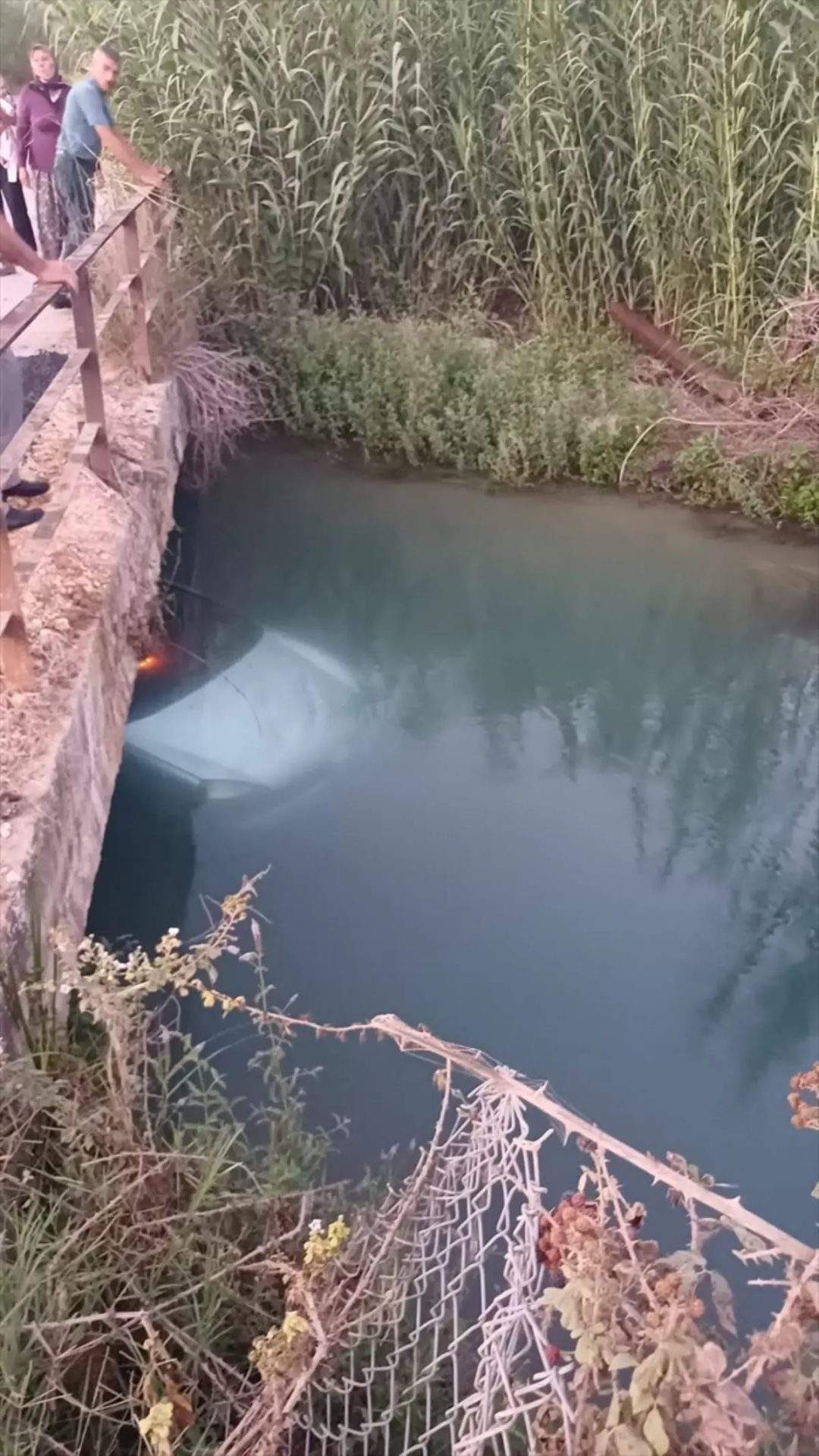Serik'te otomobil sulama kanalına düştü, sürücü ve yolcu yara almadan kurtuldu.