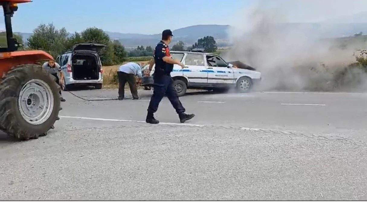 Kırıkkale'de bir vatandaş, galeriden satın aldığı ikinci el otomobille evine doğru yola çıktı ancak kısa bir süre sonra aracın motoru alev aldı.