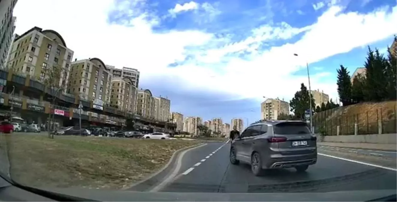 Başakşehir'de sürücülerin tartışması sonucu bir sürücü, diğerine çarparak metrelerce sürükledi.