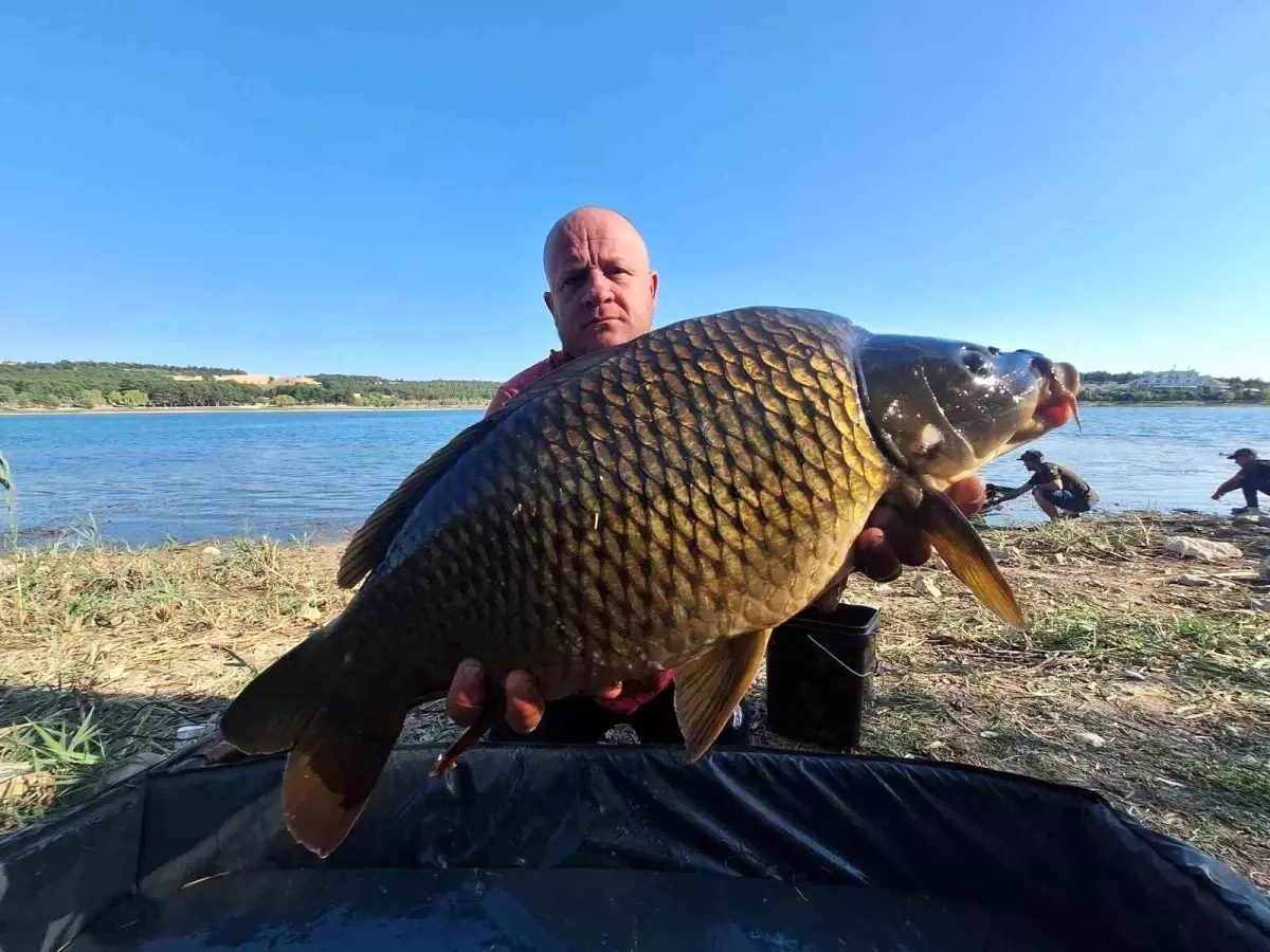 Kerim Çelikbilek ve arkadaşları, yakaladıkları dev pullu sazanları suya geri saldı.