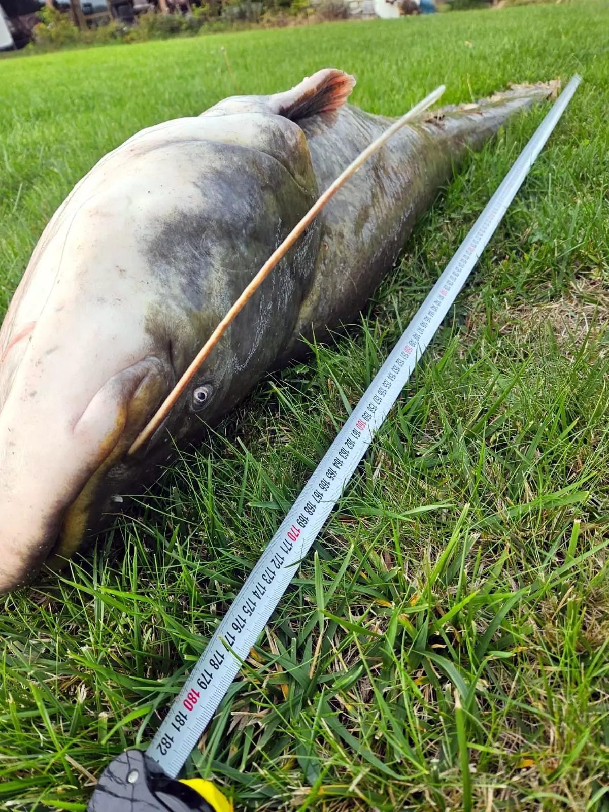 Amatör balıkçı Gürcan Kavaklıoğlu, Çorlu'da 70 kiloluk yayın balığı yakaladı.