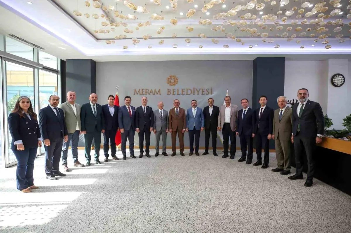 AK Parti Bursa İl Başkanı Davut Gürkan ve belediye başkanları, Meram Belediyesi'ni ziyaret ederek kentsel dönüşüm projeleri ve şehirleşme vizyonu hakkında bilgi aldı.