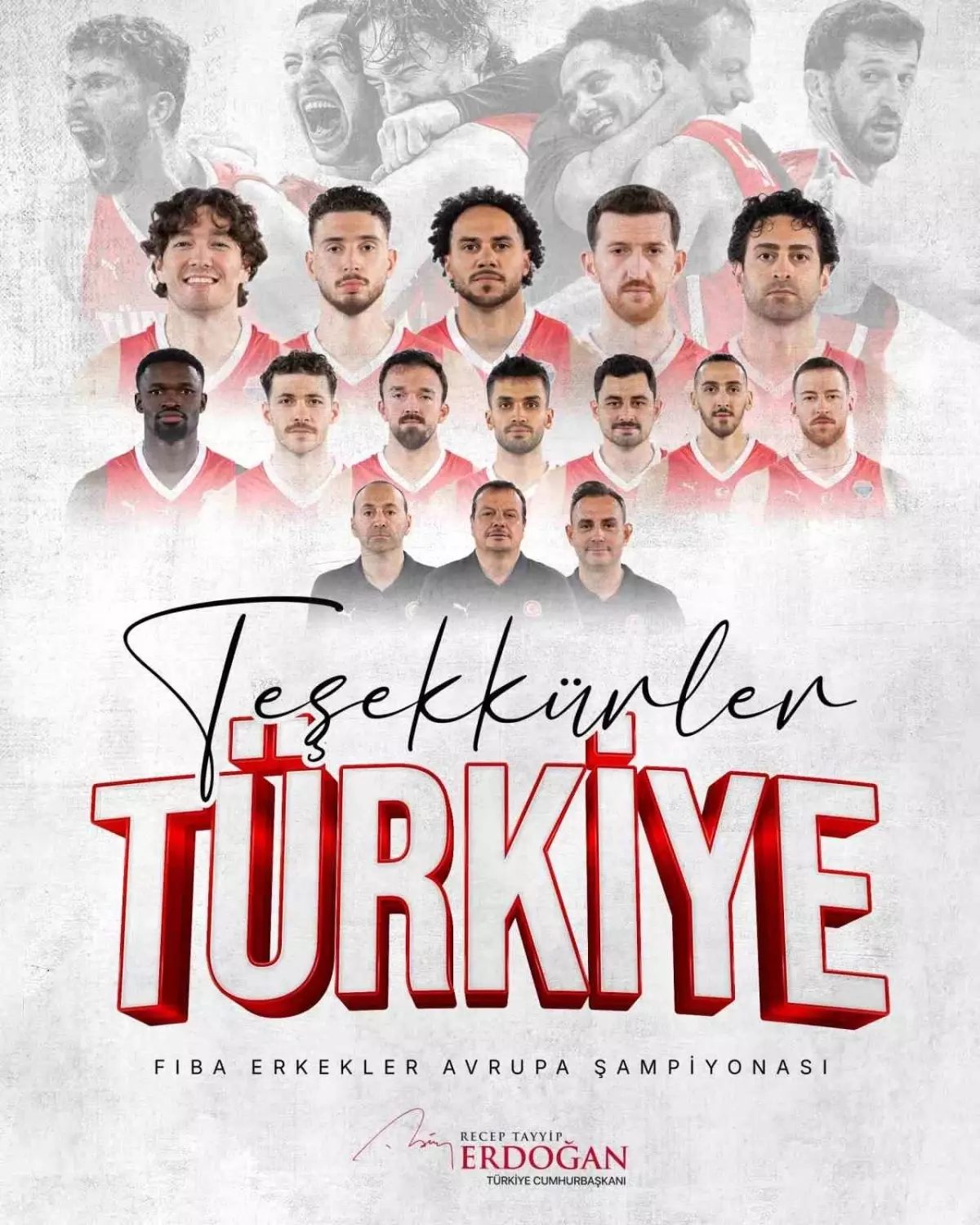 Cumhurbaşkanı Recep Tayyip Erdoğan'ın eşi Emine Erdoğan, 2025 Avrupa Basketbol Şampiyonası (EuroBasket 2025) finalinde Avrupa ikincisi olarak gümüş madalya kazanan A Milli Erkek Basketbol Takımı'nı kutladı.