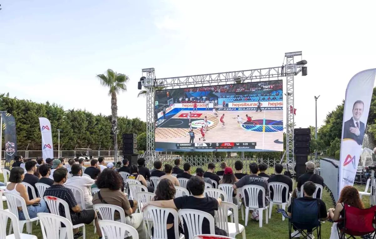 Mersin Büyükşehir Belediyesi, A Milli Erkek Basketbol Takımı'nın EuroBasket 2025 çeyrek finalinde Polonya ile oynadığı maçı, dev ekranla halka izlettirdi. Türkiye'nin 91-77 galibiyetiyle sonuçlanan maçta Mersinliler büyük bir heyecanla yer aldı.