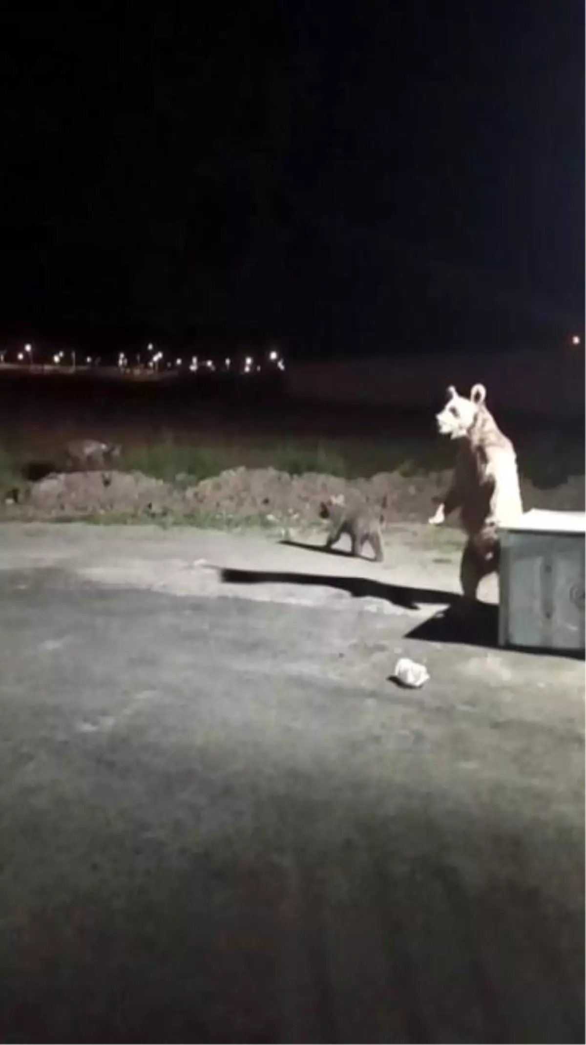 Kars'ta çöp konteyneri deviren ayıları kaydeden kişi, anne ayının saldırısından kurtuldu.