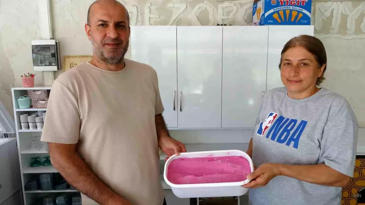 Malatya'nın Arapgir ilçesinde mor reyhan dondurması ilgi görmeye başladı. Doğal üretimle hazırlandı.