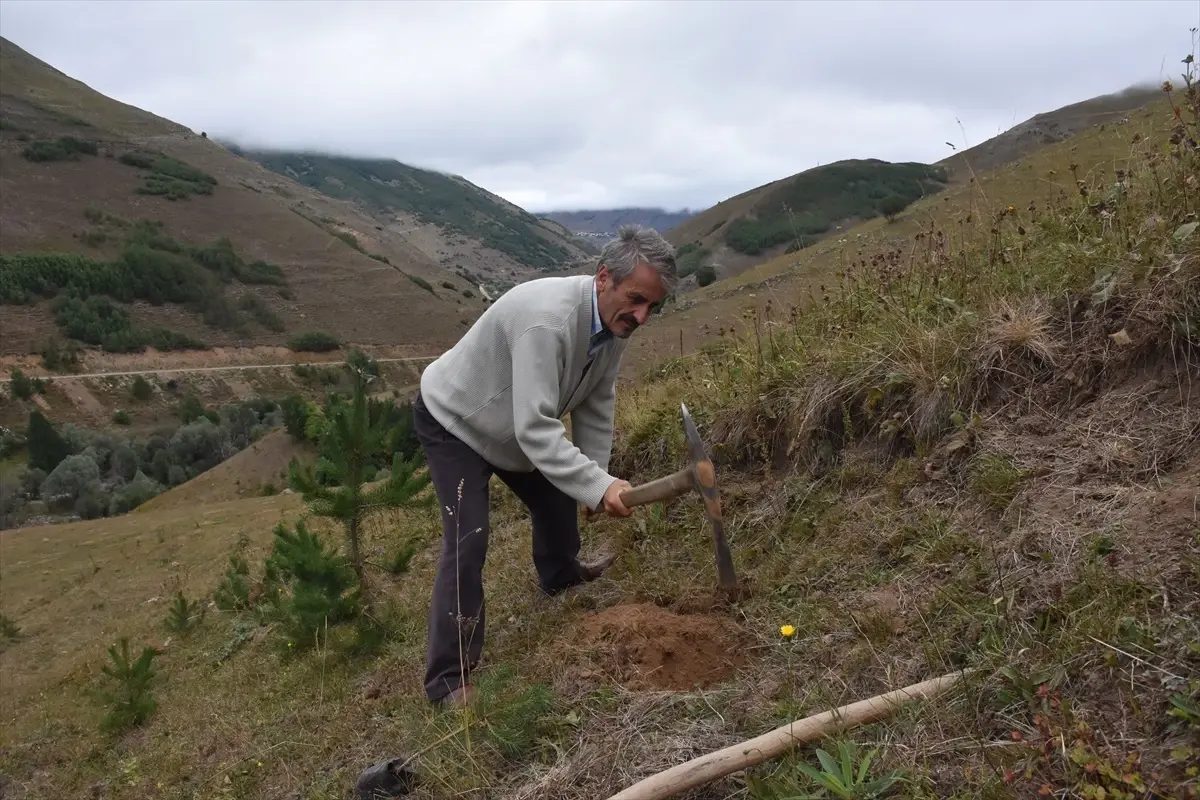 Gümüşhane'de emekli din görevlisi Ali Ural, 40 yılda köyüne 50 bin fidan dikti.