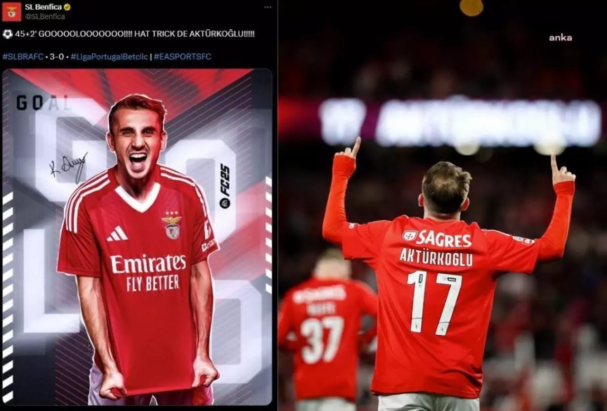 Kerem Aktürkoğlu, Benfica ile Rio Ave maçında 3 gol atarak takımının galibiyetine katkı sağladı.