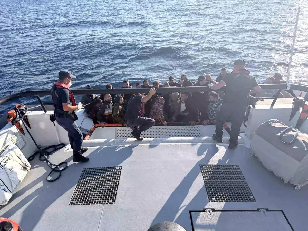 Muğla'nın Datça açıklarında, 5'i çocuk 42 düzensiz göçmen ve 2 göçmen kaçakçısı yakalandı.