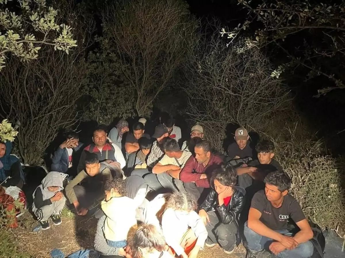 İzmir'in Seferihisar ilçesinde 11'i çocuk 32 düzensiz göçmen yakalandı, 1 kaçakçı gözaltında.