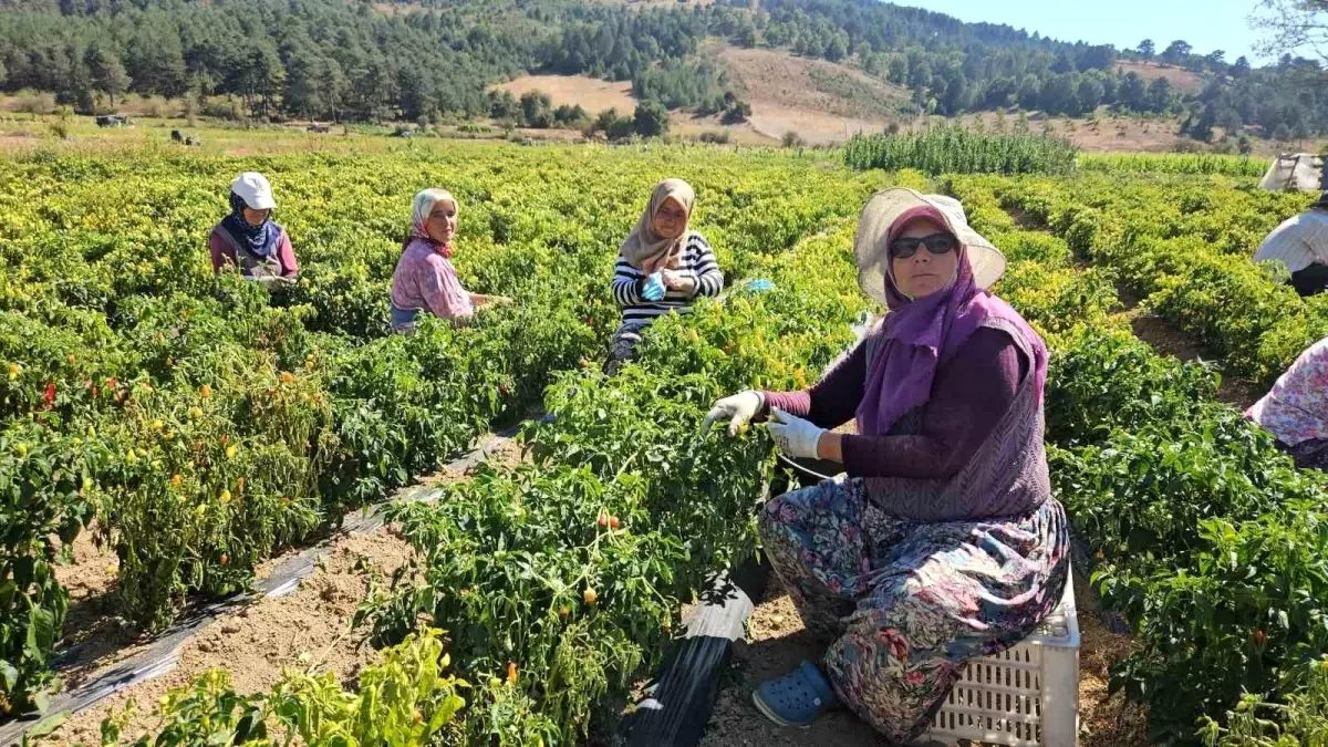 Sındırgı'da biber hasadı başladı, verim yüksek. Çiftçiler memnun, ürün kilosu 90 TL'ye satılıyor.
